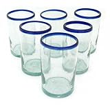 NOVICA, in association with National Geographic, offers thousands of limited edition and one-of-a-kind gifts, jewelry, and home decor treasures handmade by master artists and artisans throughout the world. Javier and Efren present a stunning set of six, blue-rimmed glasses. Each glass is individually hand-crafted to bring you the magic of quality Mexican art blowing. Note: Because each item is individually handmade, the dimensions on each piece may vary by up to + - 3 8 inches (1 cm). Read more